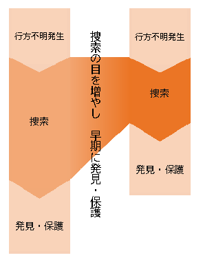 行方不明になる可能性のある認知症高齢者等の名前や特徴、写真などの情報をあらかじめSOSネットワークに登録しておくことで、早期発見につなげることを目的としています。