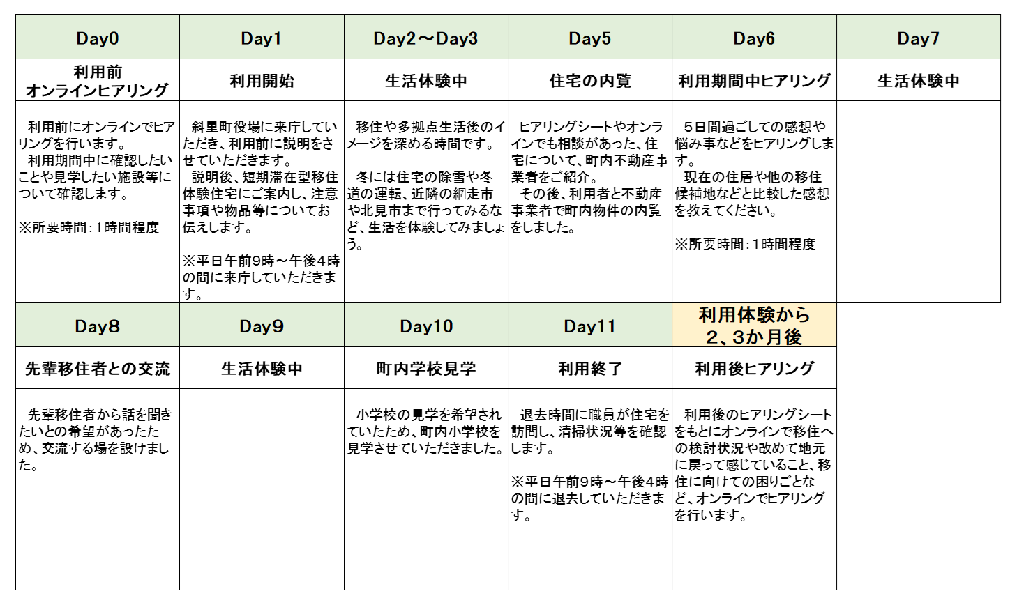 斜里町ちょっと暮らし利用例