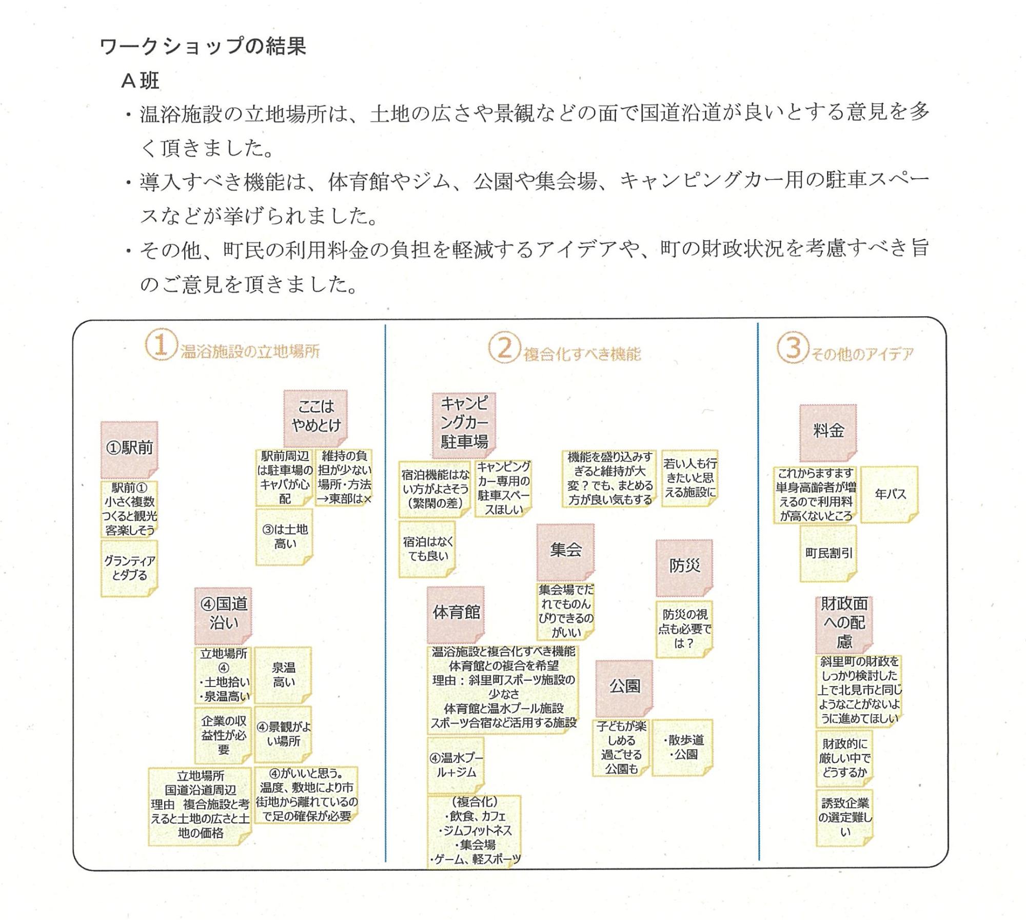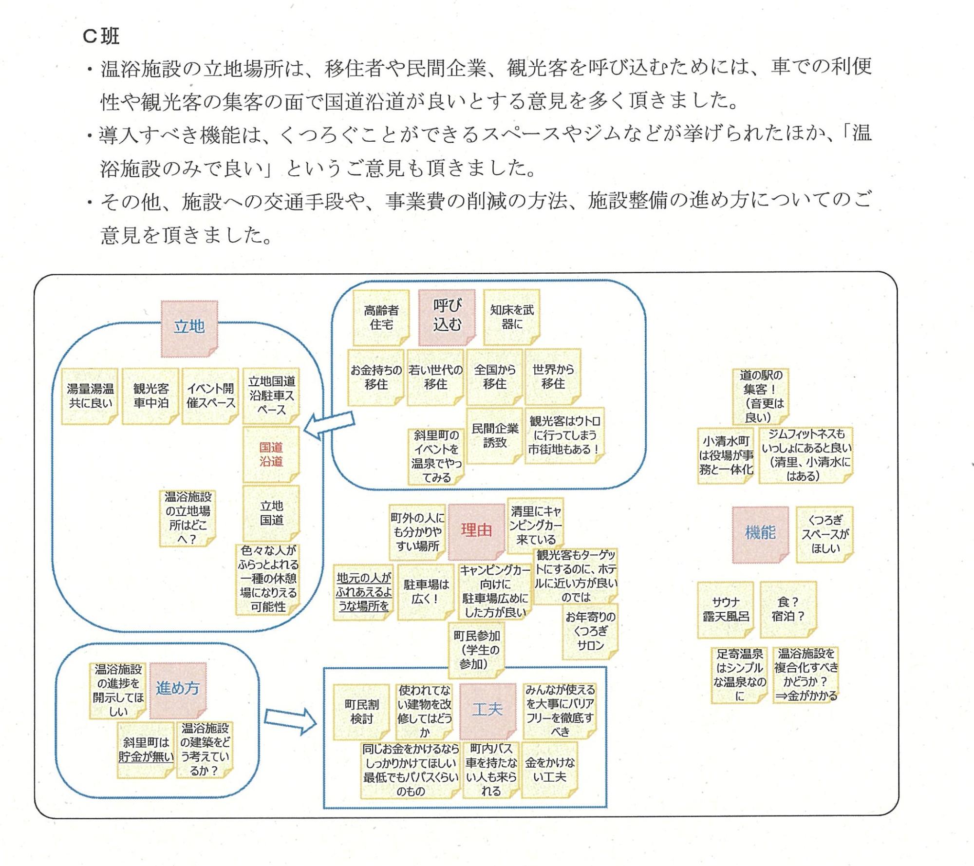 ・目的:「斜里町に温浴施設ができるのであれば、どんな施設がよいか」をテーマとした意見交換
