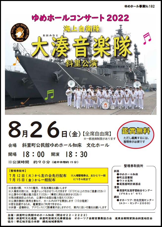 〈問合せ〉斜里吹奏楽団 石川昭子(090-3019-6633)